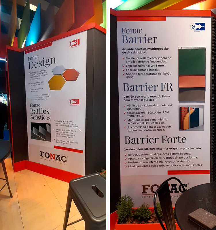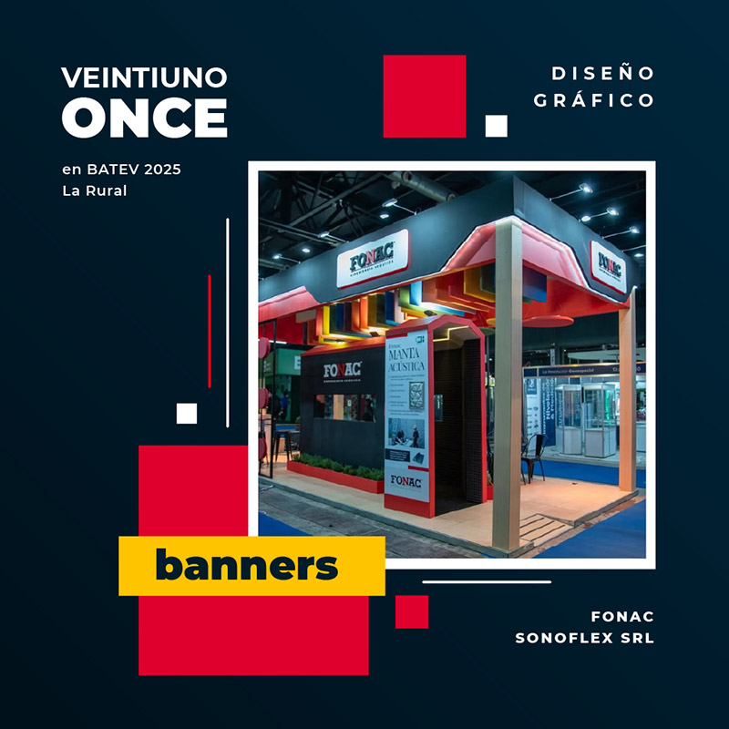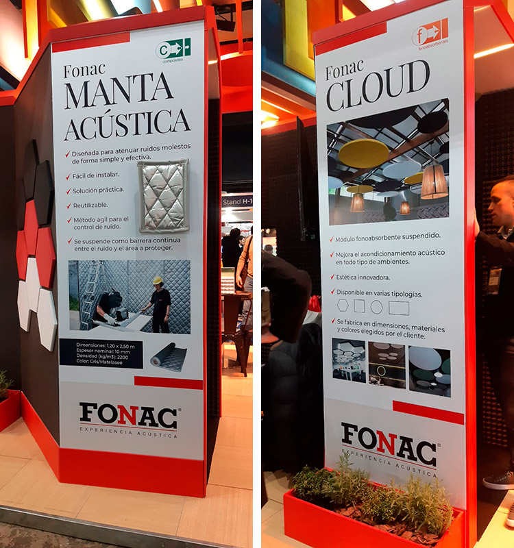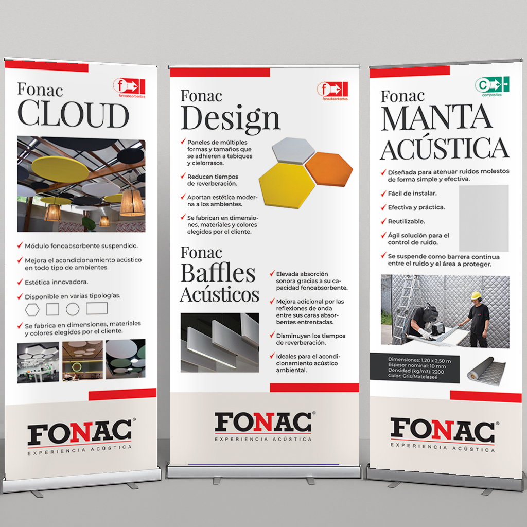 Diseñamos 4 banners para el stands de la empresa Sonoflex, con los nuevos productos FONAC de 2,2 mts. de altura por 78 cm de ancho.